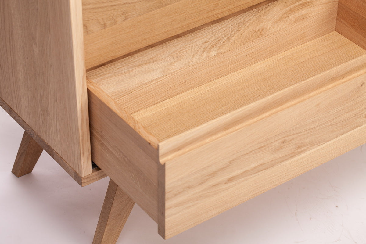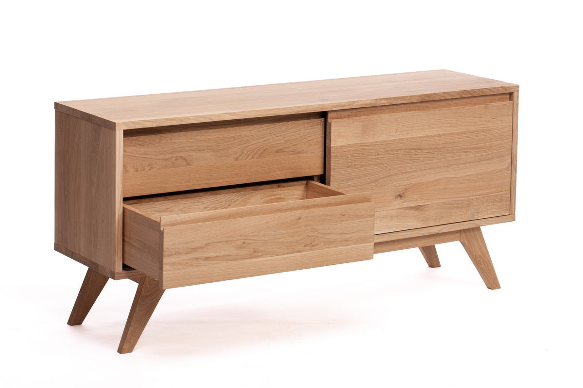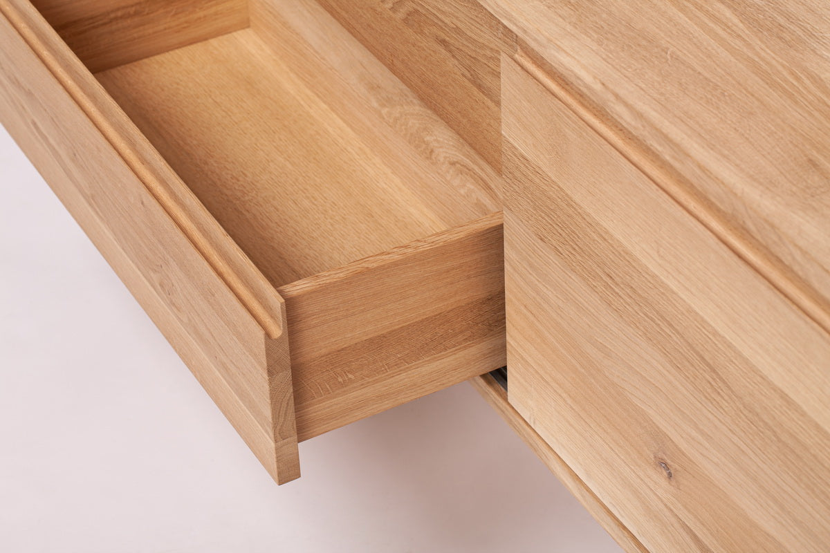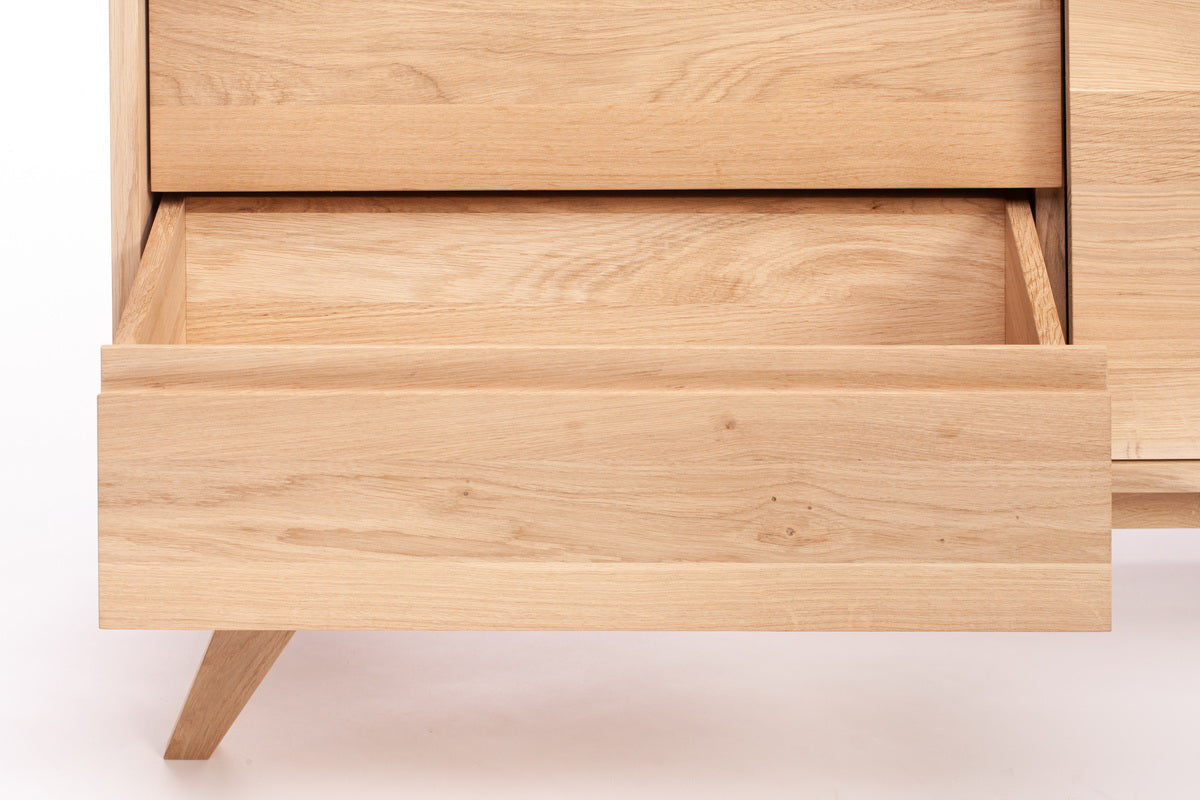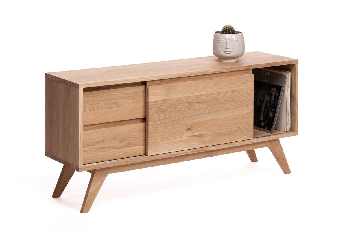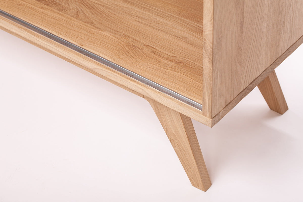 Kiekvienas ąžuolo medienos raštų niuansas yra unikalus, todėl jūsų TV spintelė bus vienetinis kūrinys. Natūrali medienos tekstūra ir šilti atspalviai puikiai dera tiek su šiuolaikiniais, tiek su klasikiniais interjerais.
