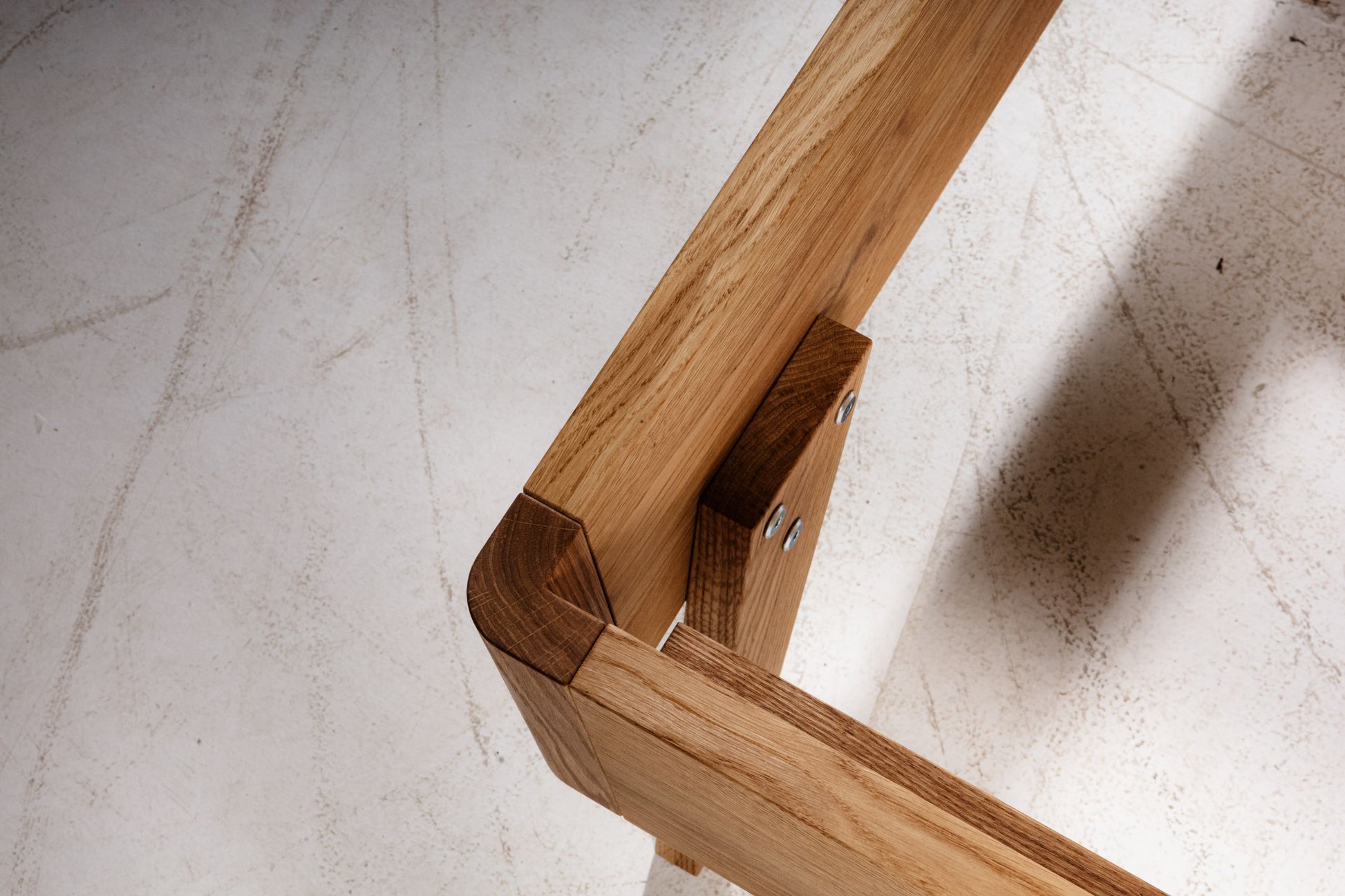 Visa lova yra padengta natūraliu aliejumi, kuris išryškina gilią ąžuolo tekstūrą bei spalvą, o taip pat išsaugo ir pabrėžia natūralų medienos kvapą. Klasikinės formos, šiek tiek į išorę pasvirusios kojos suteikia stabilumo ir modernaus stiliaus pojūtį.